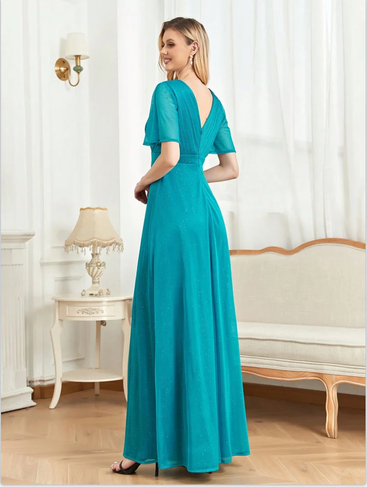 Designed for timeless elegance, this long bodycon dress features short sleeves, a flattering V-neckline, and a stunning backless design. The slim A-line silhouette enhances the figure while maintaining a refined look, making it the perfect choice for weddings, evening events, club nights, and graduation celebrations.
